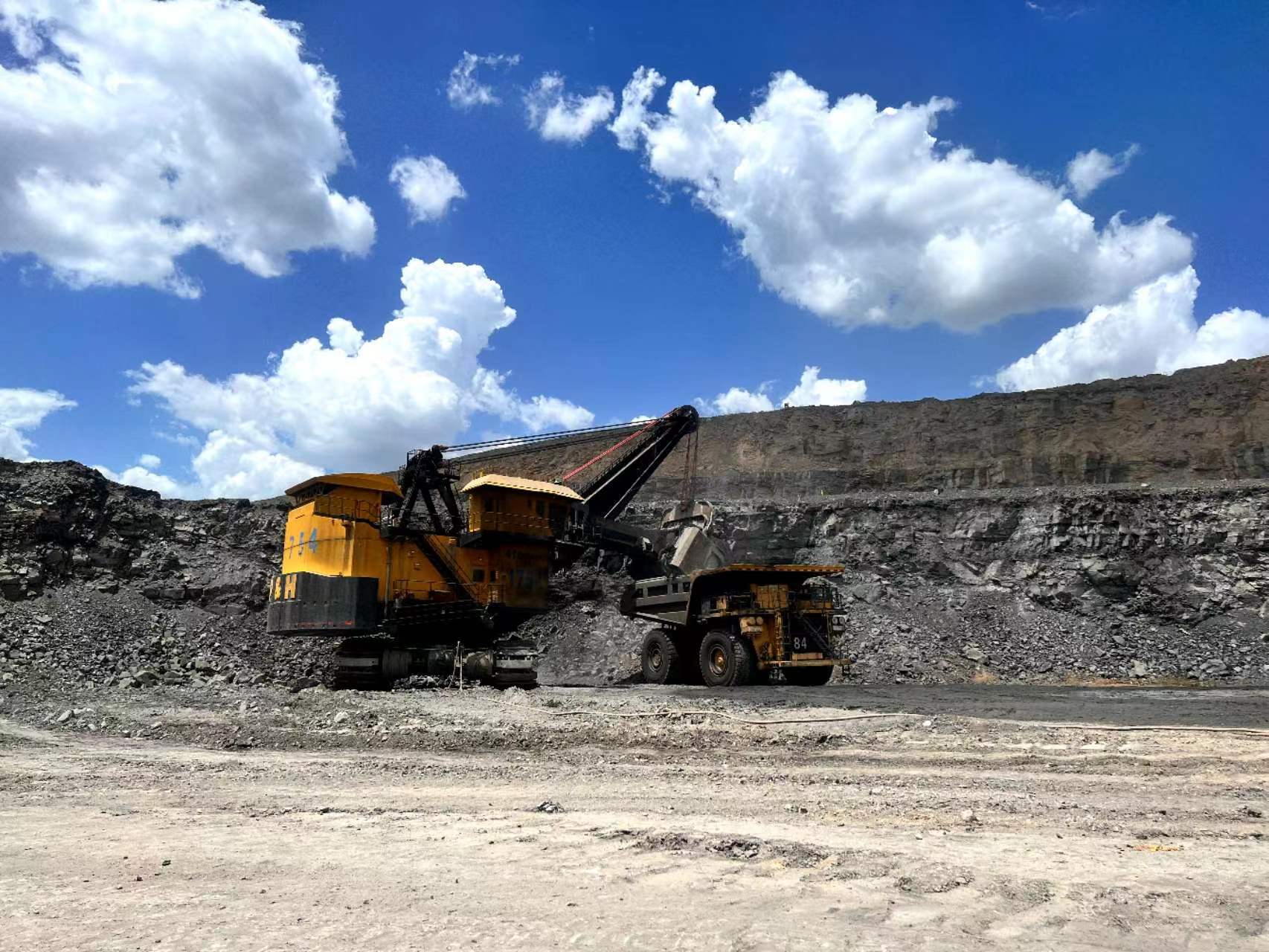 中煤平朔集团东露天矿内,电铲和卡车正在进行采装作业。新华社记者 张磊 摄