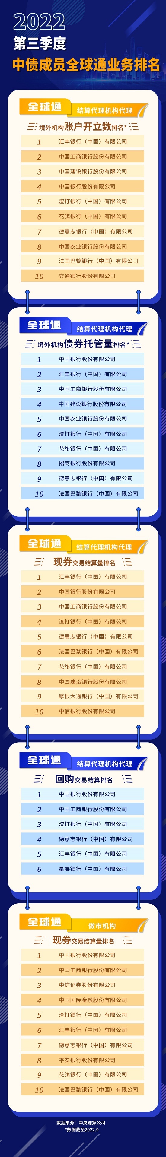 中债登发布2022年三季度中债成员“全球通”业务排名