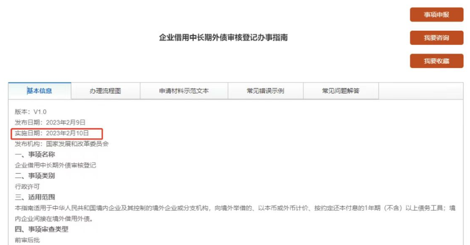 新华财经北京2月10日电 国家发改委官网9日更新企业借用中长期外债审核登记办事指南常见问答,由原来的七十五条更新至目前的六十五条, 给予企业相应指导。今日(2月10日),《企业中长期外债审核登记管理办法》(国家发展和改革委员会令第56号)将正式实施。