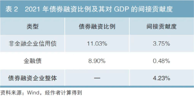 债券融资对GDP的间接贡献度=债券融资企业对GDP的贡献度×债券融资比例
