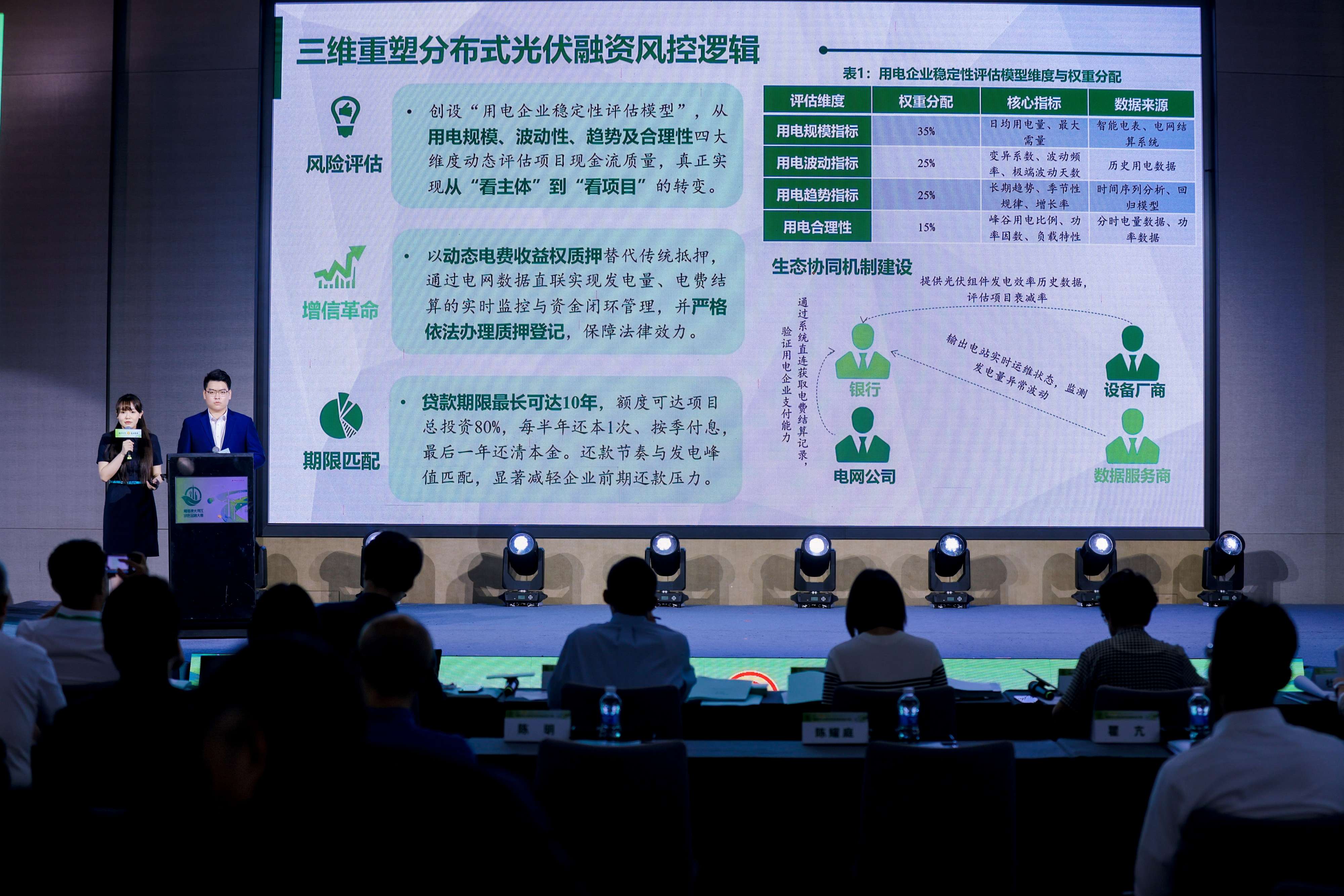 9月17日,大赛同步举办粤港澳大湾区绿色金融业务区域协同发展交流会,深化区域合作共识。康华平、徐俊良致辞。国家金融监督管理总局政策研究司副司长王梦熊,生态环境部对外合作与交流中心党委委员、纪委书记丁辉,中国人民银行信贷市场司绿色金融处处长陈波做主旨报告。中国建设银行、伦敦大学学院、中国人民财产保险股份有限公司深圳市分公司、中信银行信用卡中心、中国农业发展银行广东省分行代表从机构角度探讨如何扎实做好绿色金融大文章。六位大赛优秀参赛选手代表走上讲台,结合自身的参赛经历和项目实践,分享了他们在绿色金融领域的深刻见解、实践经验与心得,探讨如何切实提升绿色金融业务技能。