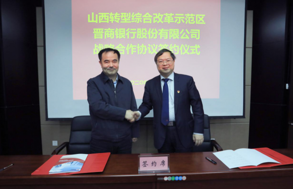 签约仪式上,由晋商银行党委副书记、行长唐一平与山西综改示范区党工委副书记、管委会主任李晋平签署战略合作协议,双方表达了建立长期合作关系的良好愿景,将在更广领域、更大范围、更深层次开展交流与合作,协同推进项目融资,实现资源共享、优势互补,共建山西综改示范区发展良好局面。(赵培淇 董慧欣)