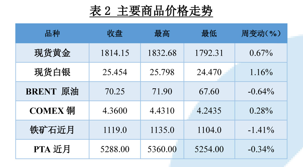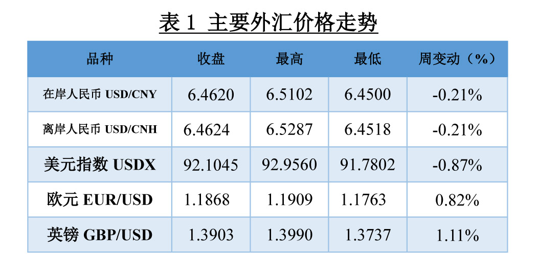 本周,美元指数跌宕起伏。周初,德尔塔病毒蔓延抬升市场避险情绪,助推美指上行,但周三时公布的美国7月CPI涨幅缓和,市场紧缩预期减弱,且周五时公布的消费者信心指数不及预期,美指承压下跌,最终报收于92.5194。欧元方面,周初公布的欧洲经济指数不及预期令欧元下跌,但下半周美元走弱推升欧元,欧元兑美元最终报收于1.1795。人民币方面,周初美指走强令人民币承压,但央行二季度货币政策报告削弱市场宽松预期,限制了人民币的跌幅,随后因美元走软,人民币顺势回调,最终报收于6.4767。
