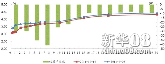 时隔两个月后3 年央票放量重启发行,主要可能出于以下考虑:其一,四季度利率产品供应明显降低,而近期资金较为充裕,3年央票可满足市场配置需求;其二,近期人民币加速升值,在存款准备金工具难再动用时,长期限央票发行可回收部分因热钱流入增加的流动性;其三,央票收益率一二级市场倒挂改善,3年期利差倒挂消失为其放量发行奠定基础。在外围市场动荡、国内通胀压力有所减弱但仍居高位、实体经济增速放缓的背景下,加息概率已不断降低,存款准备金工具亦缺乏更多操作空间,上周公开市场各主要品种悉数登场,显示当前货币政策谨慎维稳的基调持续,央行将更多采用灵活的公开市场操作来调控流动性。隔夜和7 天回购利率均大幅下行,10月14日隔夜和7天回购利率分别收报2.8942%、3.1441%,较9月30日大幅下跌197.12bp 和187.87bp。本周央票到期490亿元,正回购到期500亿元,总到期资金990亿元。