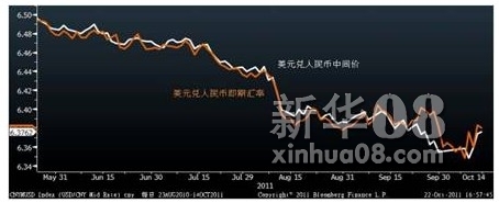 图4:美元对人民币中间价和即期汇率
