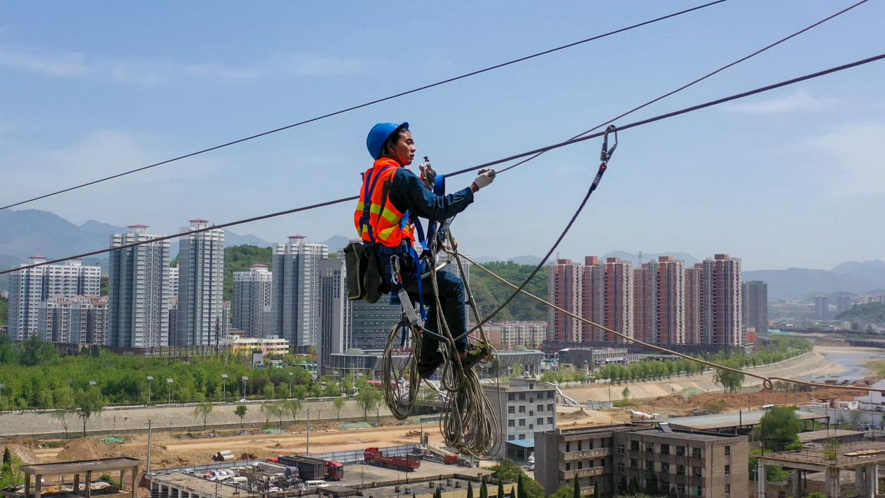 在新旧铁塔更换的过程中,该公司输电线路工程部采取“封网”作业形式破解难题,由多名高空作业人员紧密配合,携带导引绳,攀着南秦山上4号塔的旧导线,从百米高空跨过福银高速滑向3号塔,再借由导引绳将整张防护网拉到两个铁塔之间,在高速路上空铺设成一张防护网,封住了隐患,“织”起了安全网,确保架线施工不会影响福银高速通行。