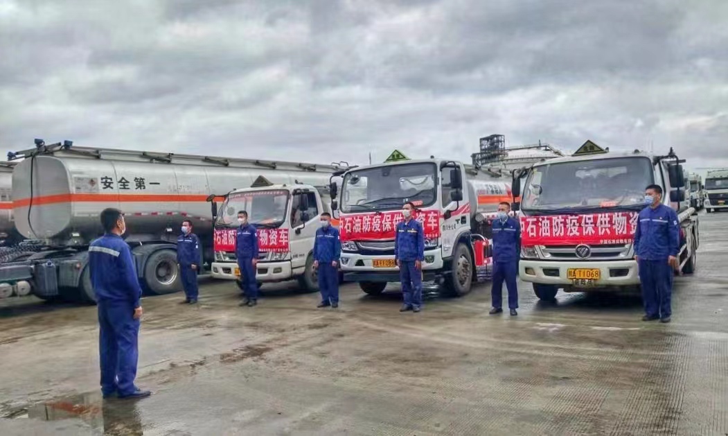 5台中国石油小额配送车,为方舱医院扩建项目实行24小时全天油品配送加注服务。