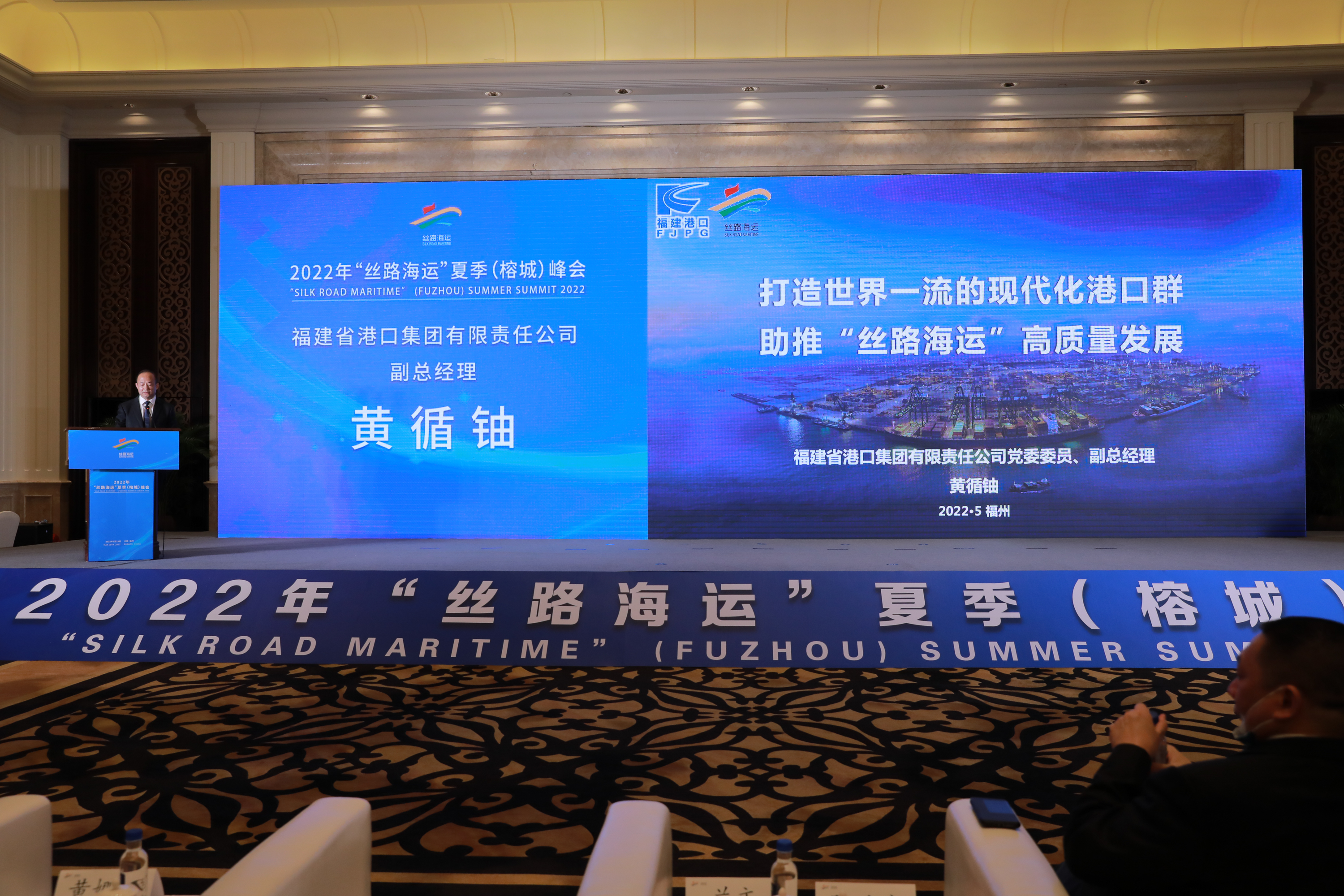 在19日举办的2022年“丝路海运”夏季(榕城)峰会上,福建港口集团副总经理黄循铀发表题为《打造世界一流的现代化港口群 助推“丝路海运”高质量发展》的主旨演讲。