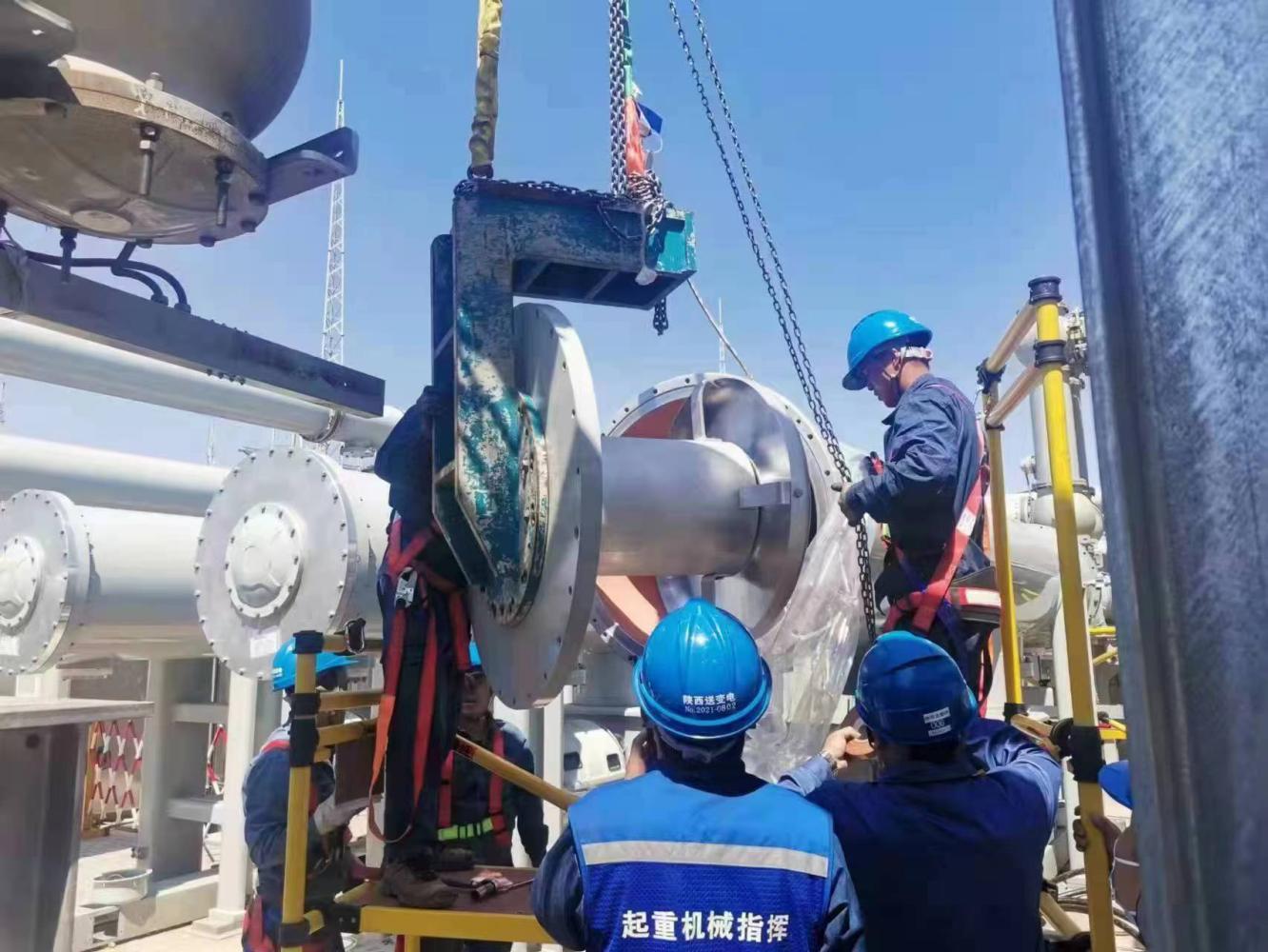 5月28日,国网陕西超高压公司±500千伏宝鸡换流站德宝直流双极停电检修现场工作人员对换流变平波电抗器套管进行擦拭清灰工作。任奕星 摄