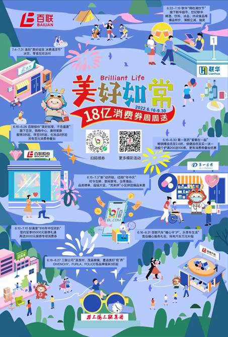 据介绍,百联在沪2200多家门店将全面参与此次举办的“美好如常·百联乐享生活季”整合营销活动,行惠民之举送出“18亿百联消费券”,用实际行动传递对社会与消费者的温情。