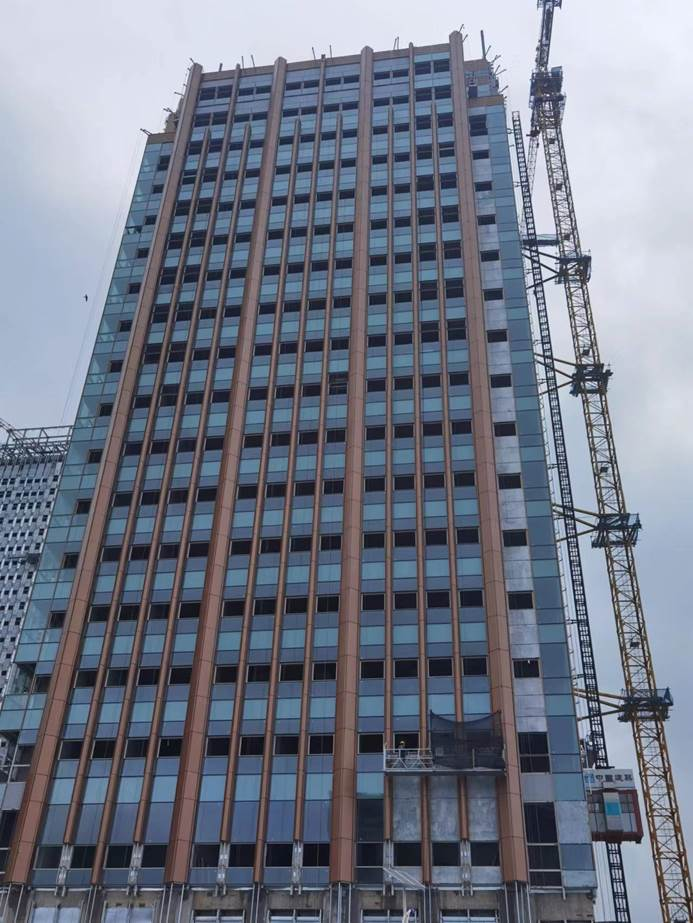 哈尔滨新区金融中心位于东起科技一街,南临创新一路,西至科技广场,北抵创新路的合围区域内,总用地面积5.17万平方米,总建筑面积22.2万平方米,地上由整体3层裙房联通4栋主楼单体组成,用于办公与配套金融服务,为超高层综合办公楼。目前正处于钢结构、外幕墙及装饰装修施工阶段。据了解,哈尔滨新区金融中心项目由中建一局东北区域公司承建。该工程地处临江,地下水位高、风力大,如何控制好地下防水和保证安全高效的垂直运输及外幕墙施工是施工重点,同时项目包含多处超危大工程如超高超跨结构施工,超高幕墙作业,超跨钢结构施工等内容。
