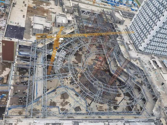 7月18日,记者在中建一局哈尔滨新区金融中心项目施工现场看到,四座高大的主体建筑均已封顶,项目中心位置的钢结构造型也初具雏形。几座塔吊有序运送着钢筋、砖料等建材,工人们手不停歇,争分夺秒抢工期。