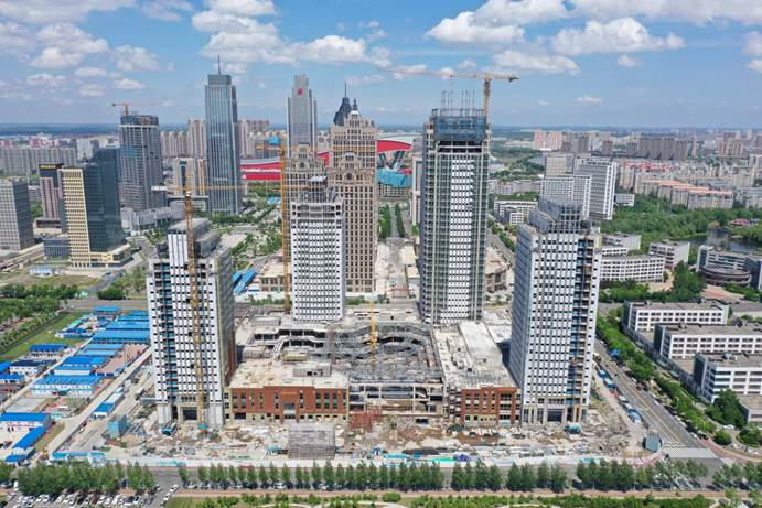 【新华企业资讯7月21日】7月18日,记者在中建一局哈尔滨新区金融中心项目施工现场看到,四座高大的主体建筑均已封顶,项目中心位置的钢结构造型也初具雏形。几座塔吊有序运送着钢筋、砖料等建材,工人们手不停歇,争分夺秒抢工期。