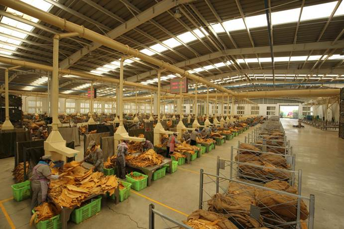 图为麒麟复烤厂仓储分选现场 (王钟平摄)
