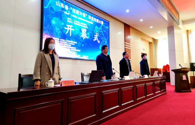 潍坊工程职业学院党委委员赵庆松,山东省技能人才开发协会副会长、山东工业技师学院党委副书记张品文出席会议,山东硕博智能科技有限公司总经理杨子力、东方互联(山东)科技有限公司总经理王强,裁判长岳明君,教务处和机电工程学院负责同志,全体协办单位、专家组、裁判组、监督仲裁组成员,参赛学校领队、指导教师、参赛选手代表参加开幕式。