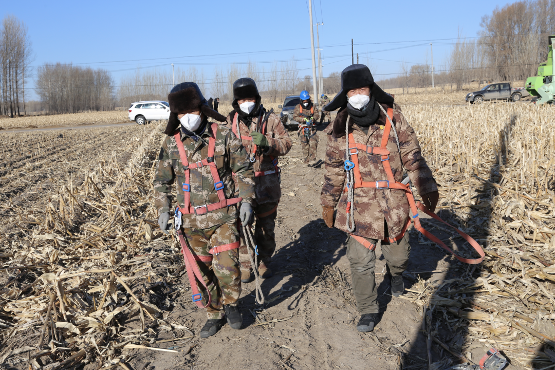 图为:国网公主岭市供电公司一线员工奔赴施工现场。