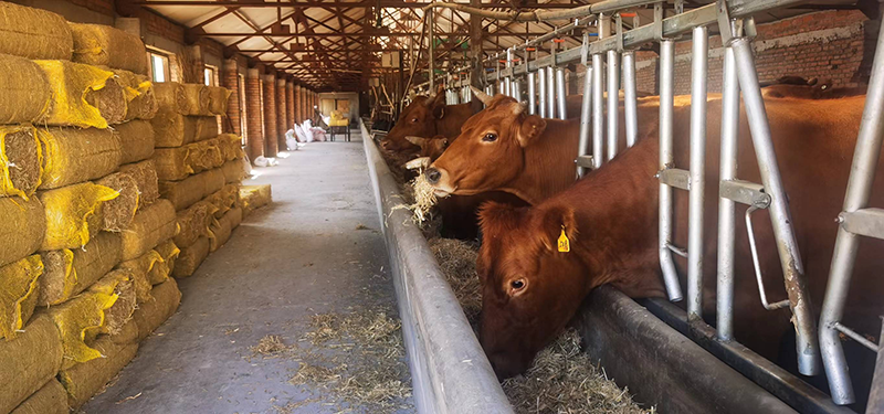 在桦甸市八道河子镇四合村新建的万头牛场里,除了整齐的现代化牛舍,一栋栋大型干草棚、青贮窖十分引人注目。这些造价不菲的专门设施有着通风、防火的功能,能够储藏大量秸秆用于制作饲料。