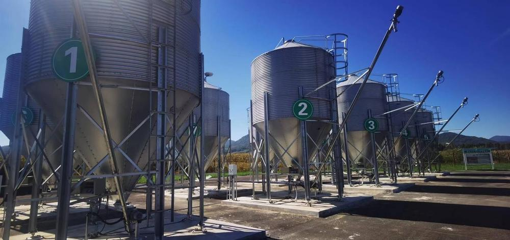 这是吉林市桦甸市国发万头肉牛养殖基地内,已经安装完成的现代化饲料发酵罐。新华社记者张博宇摄