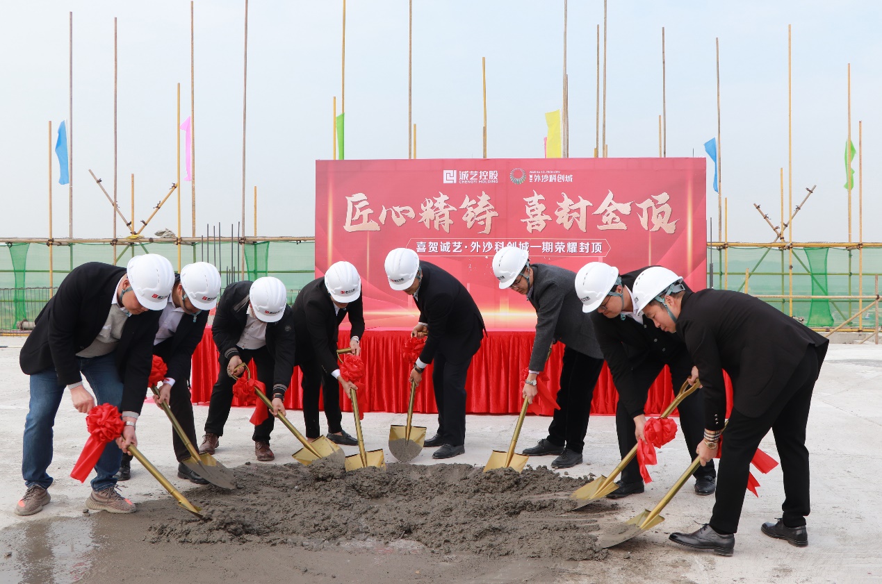 最后,冯金怡副主席和与会领导、嘉宾共同举行推杆仪式,标志着外沙·科创城(二期)项目正式动工建设,项目总投资7亿元,占地约94亩,总建筑面积21万平方米。同时,外沙·科创城(一期)于今日顺利封顶,该项目于2022年8月2日开工,占地面积约41亩,总建筑面积10.7万平方米,自启动招商以来,诚艺·外沙科创城(一期)吸引了7家产业单位达成进驻意向,预计年产值达14.5亿元。