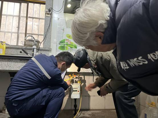 图为燃气公司工作人员为临平区星桥街道民乐社区村民开通天然气
