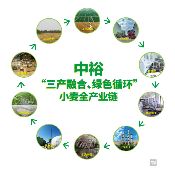 各大粮油食品加工企业从“产购储加销”各环节入手,大力发展“粮头食尾”、“农头工尾”、一二三产业融合的全产业链经营模式,实现产业链相加、价值链相乘、供应链相通。在小麦生产加工上,滨州形成了以中裕食品有限公司为全国典范的育种繁育、订单种植、仓储物流、初加工、深加工、食品加工、生态养殖、蔬菜种植、餐饮商超、废弃物综合利用的全国最长、最完整的绿色循环产业链。
