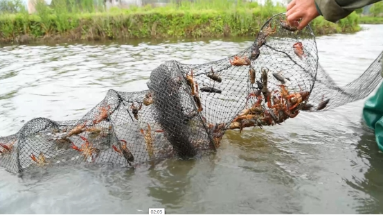 “一拉网就知道收获不小,今年又是一个丰收年呢。”江西德安县聂桥镇大何畈龙虾养殖基地负责人李文华一脸喜悦地说。随着一笼笼稻虾陆续提起,一只只色泽鲜亮、活蹦乱跳的小龙虾被打捞上岸,村民们将大网轻轻抖动几下,龙虾便滚落到筐里。