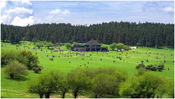 五一期间,仙女山国家森林公园内搭建了免费租赁柜台,布置了春日演唱会现场,设置了活动玩耍区。游客可以免费租赁汉服在景区打卡拍照;参与撕名牌活动,感受在大草原上奔跑的快感;参加《无处可藏》游戏,根据手机定位寻找玩家,感受躲与藏的刺激。在春日演唱会区域,游客还可以弹电子琴、打架子鼓、唱歌、听歌,尽情享受音乐的激情。