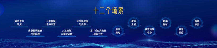 十二大场景分为两个方面,一是公共能力建设场景,主要包括跨域算力调度、多元异构数据可信流通、公共数据增值运营、人工智能大模型训练、云渲染平台与应用、北斗时空大数据服务平台等六个场景。二是行业领域应用场景,包括数字政府、数字乡村、城市运营中心、数字煤矿、智慧医疗、智慧旅游等6大场景。贵州将通过开放一个场景,引进一批企业,打造一个产业,形成一个生态。