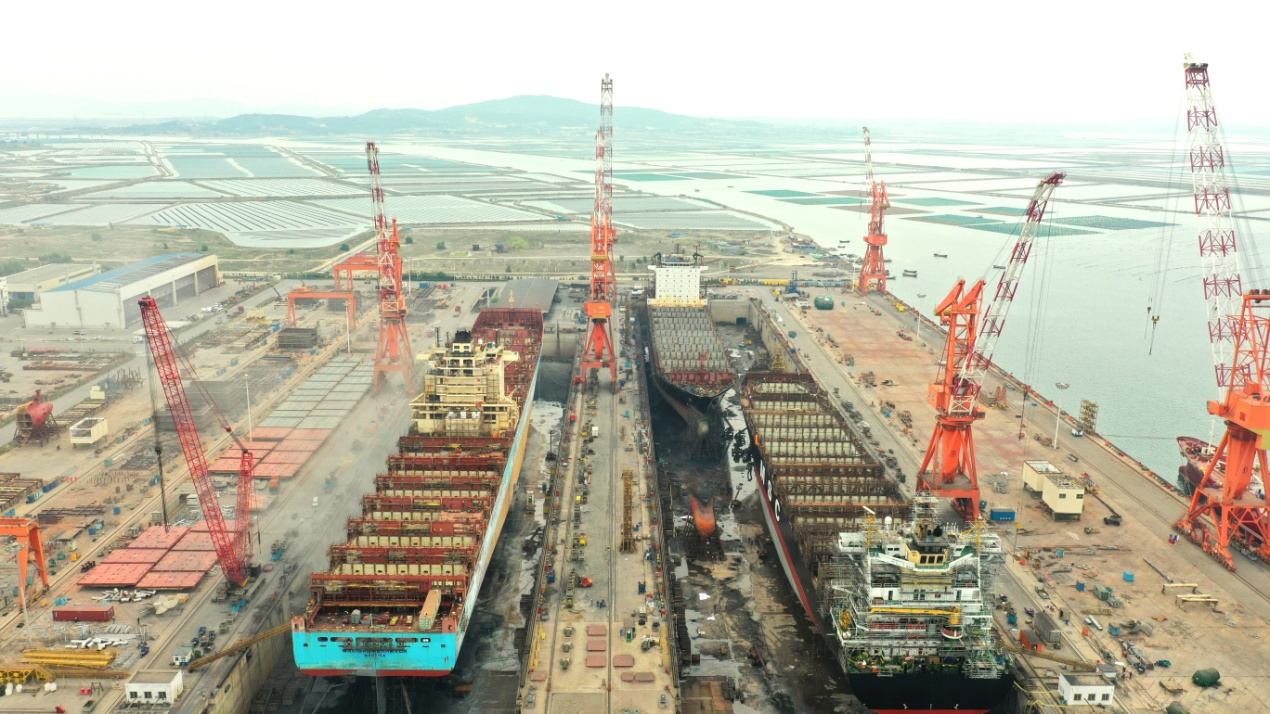 6月20日上午,在辽宁省大连船舶重工集团长兴岛船舶有限公司码头,浙能集团旗下浙能迈领环境科技有限公司(以下简称“浙能迈领”)正在对地中海航运公司的两条集装箱船进行脱硫改造。现场吊机林立、焊花飞舞,呈现一派热火朝天的施工景象。