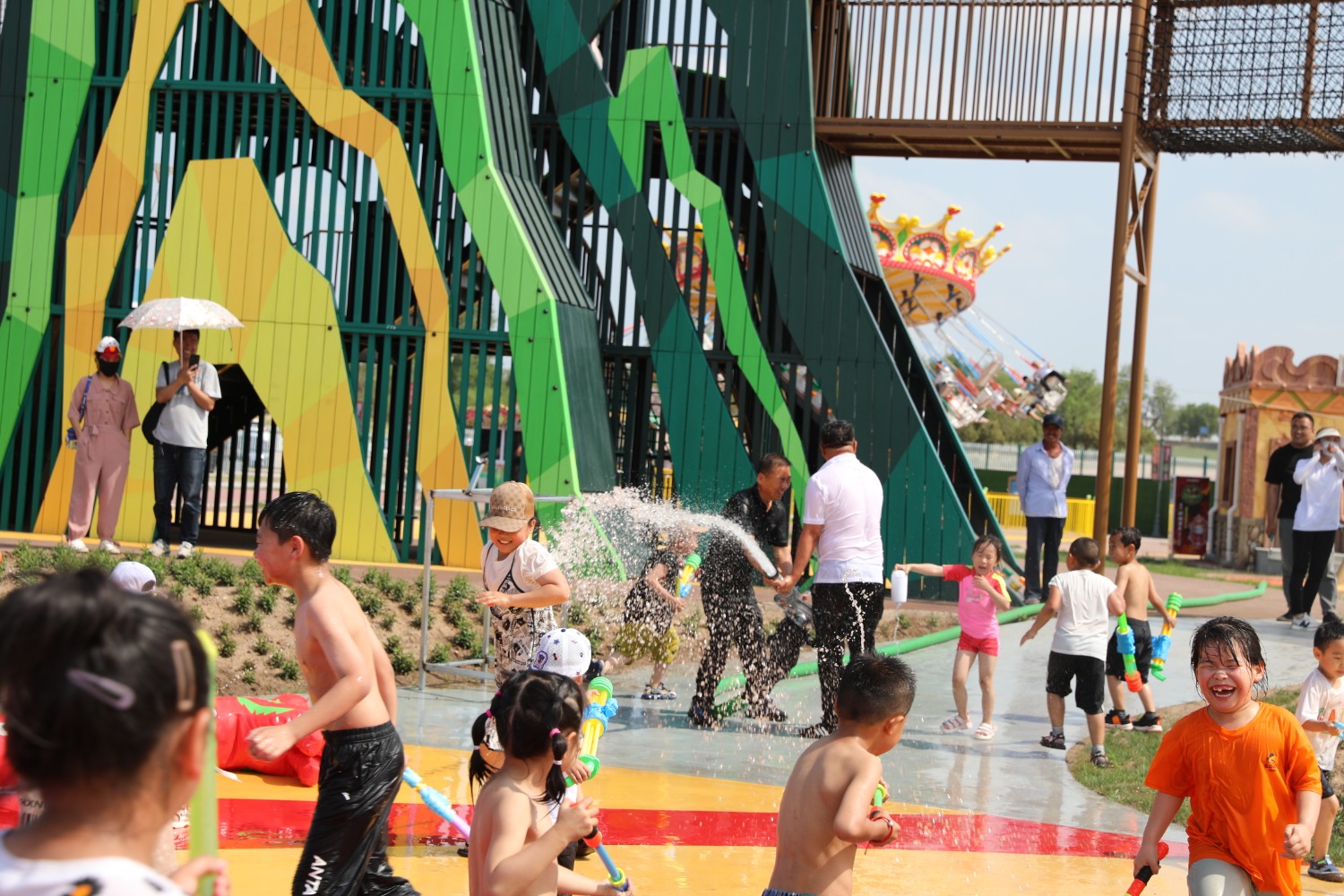 科右中旗文化旅游产业发展有限责任公司枫情府韵分公司综合管理部总监张继元说:“为满足游客消暑、玩水等多样化需求,我公司特举办2023年枫趣童年首届草原戏水狂欢节主题活动,在我们的景区设置了多点位的水枪大战、泡泡互动、主题演绎等内容,吸引游客前来消暑纳凉,引领夏日戏水狂欢新风尚。”
