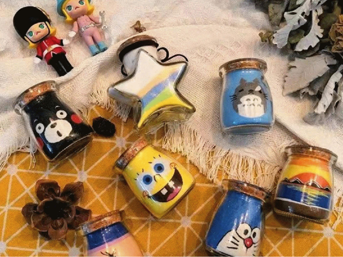沙是孩子们最喜欢的玩具之一,在全旗各学校的沙画社团课堂上,孩子们充分利用本土资源以沙为元素开展了丰富的系列课程:动态沙画、静态沙画(沙瓶画、固彩沙画)、沙手工等,这些课程深受学生们的喜爱。在内容创作上,既有传统文化的诗歌创作,也有爱国、环保等题材,还有孩子们喜欢的歌曲配画和现实题材的留守儿童心理表达。