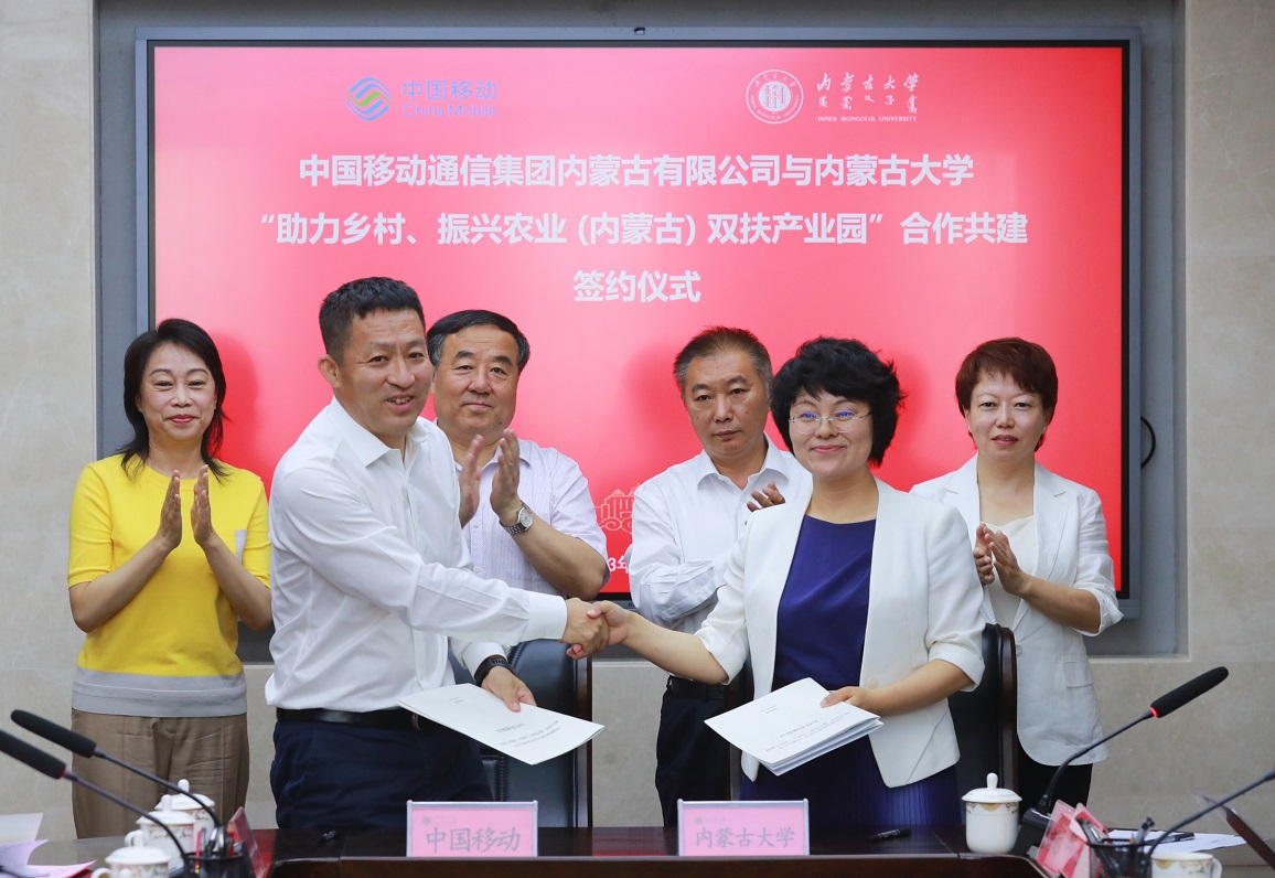 近日,内蒙古移动与内蒙古大学在内蒙古大学学术会议中心举办“助力乡村、振兴农业(内蒙古)双扶产业园”合作共建项目签约仪式。内蒙古大学党委书记刘志彧、副校长杜凤莲,内蒙古移动党委书记、总经理马险峰,党委委员、副总经理马冬梅出席签约仪式。双方共同签署《“助力乡村、振兴农业(内蒙古)双扶产业园”合作共建项目合作协议》,并就合作发展进行深入探讨。