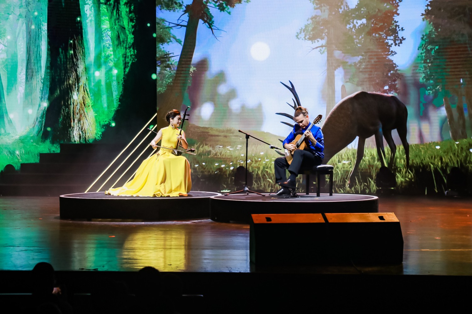 除了与二胡、扬琴的混搭,艺术家们还尝试用古典吉他对中国传统文化进行了一番演绎,让大家看到了音乐的无限可能性。青年吉他演奏家陈曦用古典吉他技巧和表现力演奏了两部中国电影的主题音乐《一生所爱》和《十面埋伏》,将中国音乐特有的韵味与情感完美呈现,赋予了传统音乐新的生命和活力。