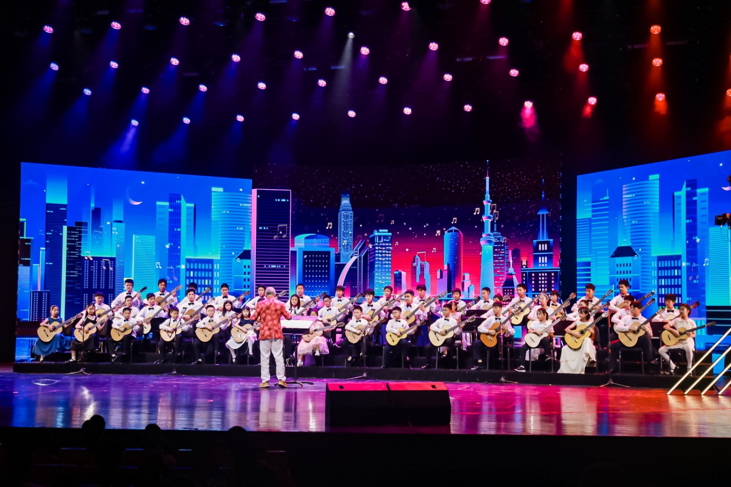 本次音乐会的压轴曲目是何塞普·恩里克斯为本届吉他艺术节专门创作的《友好的上海吉他》。现场,何塞普·恩里克斯亲自指挥,带领由50人组成的闵行青少年吉他乐团共同演绎,充分表达了上海的热情好客,也展示了不同文化的包容共存与融合互鉴的魅力。最后,音乐会在一曲青春激昂的大合唱《相亲相爱》中落下帷幕。“弦动上海”吉他音乐会不仅是一场艺术盛宴,也是一次真正意义的文化交流,观众既领略到了古典吉他艺术的无限魅力,也感受到了上海作为国际文化大都市的开放气度和文化自信。
