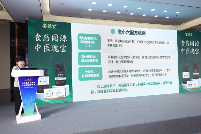 活动在一段简洁明了、生动形象的唐小六生物科技有限公司发展史视频中开始。视频结束,现场推出了唐小六青钱柳大豆肽片、七风呤茯苓葛根鹅肌肽片、甘甘净枳椇子牡蛎肽片等“安德堂”系列产品,科技感满满。