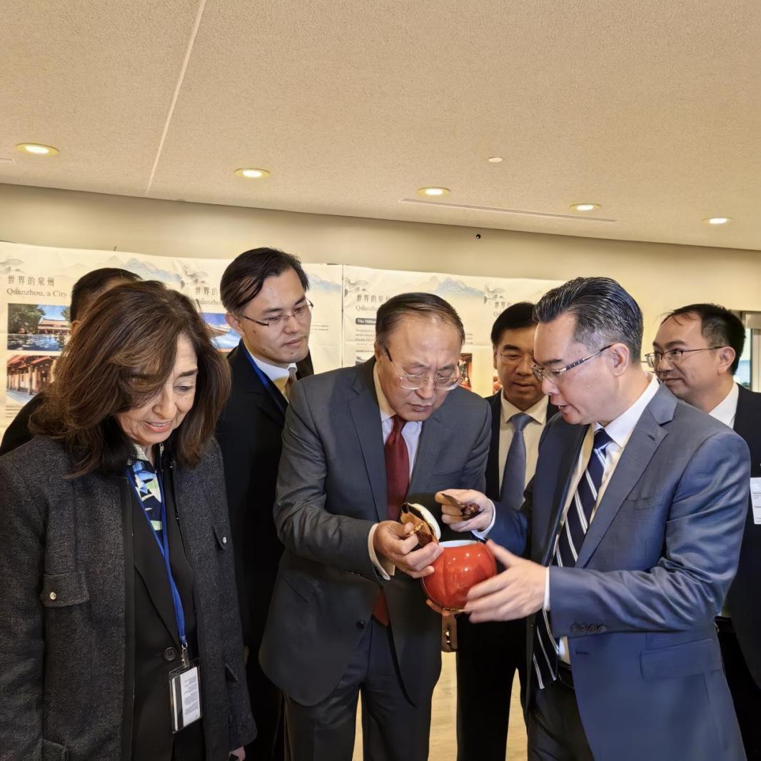 国家级非遗传承人、八马茶业董事长王文礼(右二)受邀亮相纽约联合国总部传播中国非遗茶文化