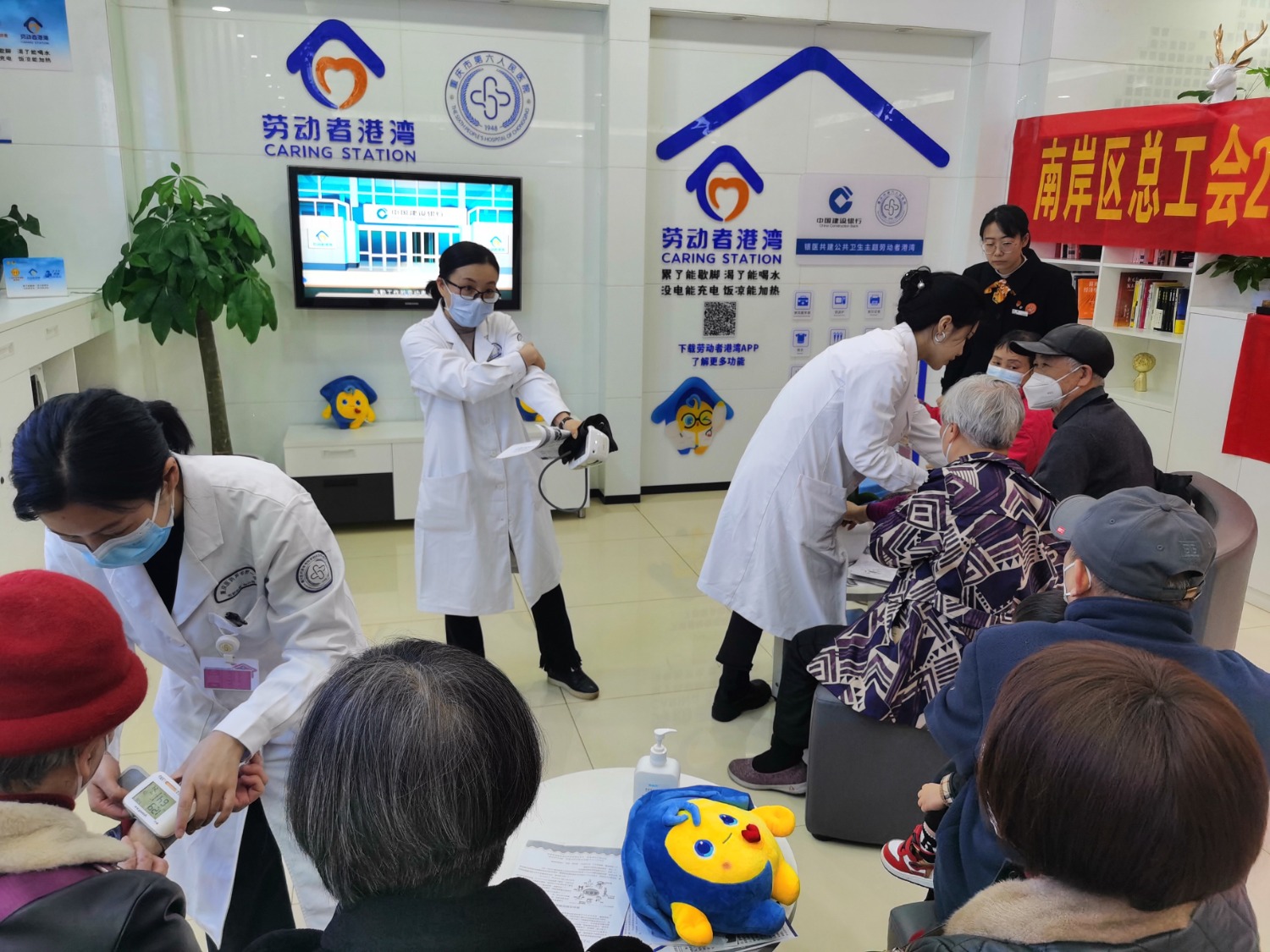与此同时,建行重庆市分行“劳动者港湾”在医疗方面也与各方展开了密切合作,搭建医疗健康平台,实现信息、资源和服务共享。建行重庆南坪支行与重庆市第六人民医院共同打造了以“银医共建公共卫生”为主题的“劳动者港湾”,以公共卫生健康为特色,向社会公众提供卫生保健、饮食健康、职业病防治等知识科普。建行重庆铜梁支行与铜梁区中医院前往铜梁巴川正街社区,现场为居民讲解心血管相关知识,并现场演示了心脏骤停紧急处理措施......