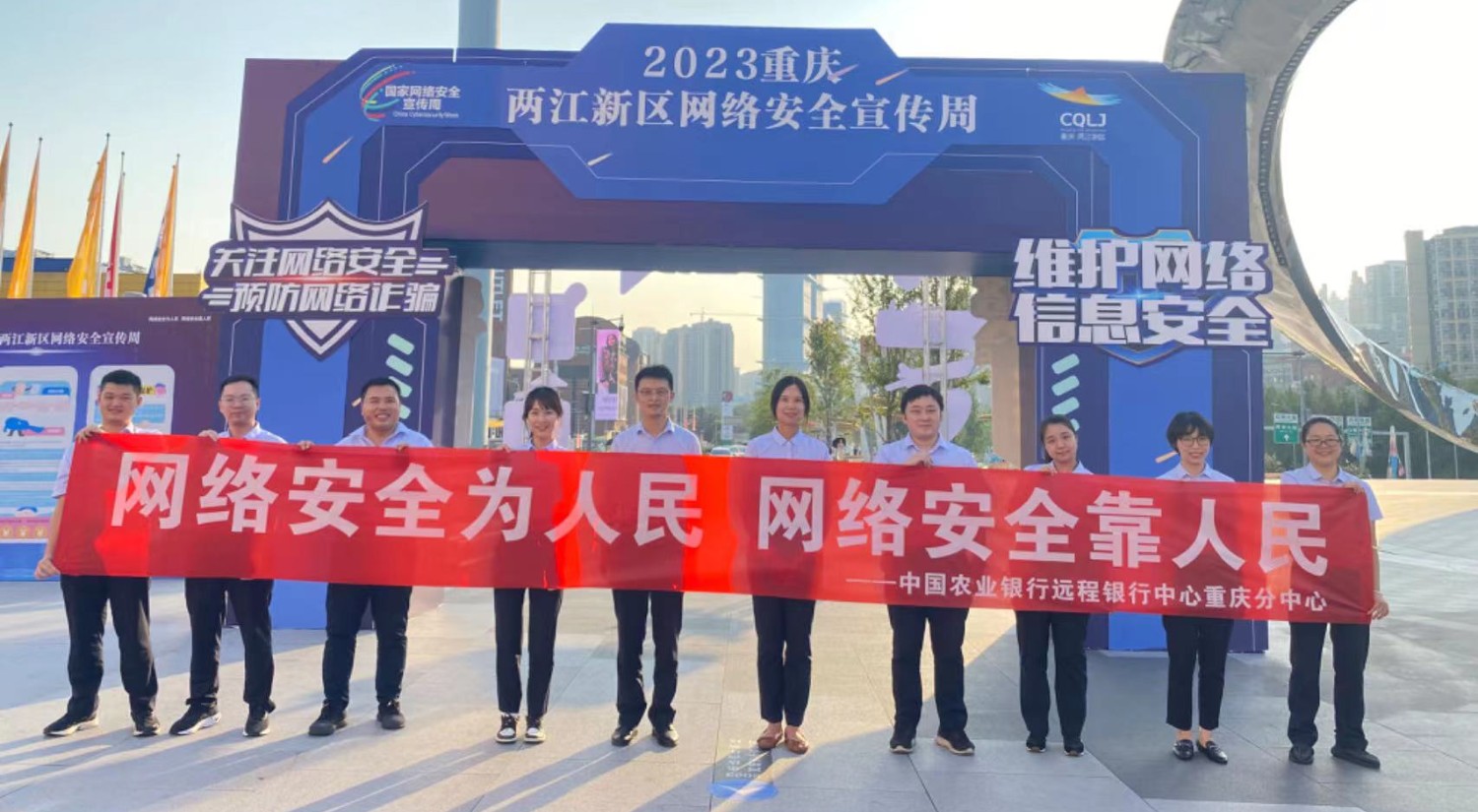 2023年9月15日至17日,由重庆两江新区党工委管委会、重庆两江新区网信委主办,重庆两江新区党工委宣传部、重庆两江新区网信办协办的“2023年重庆两江新区网络安全宣传公益集市活动”在重庆两江新区盛大启动。农行远程银行中心重庆分中心作为唯一金融企业应邀参加本次活动。