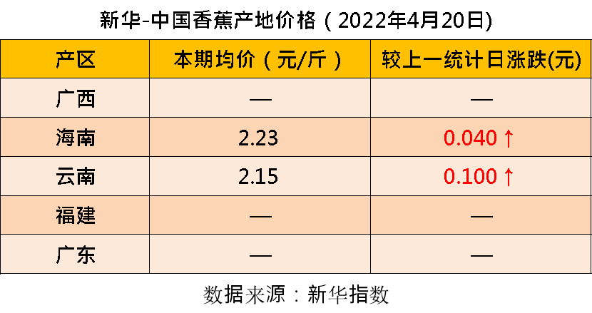 新华财经·指数丨Banana星期三香蕉产业资讯全面观(2022年第16周 总第134期)