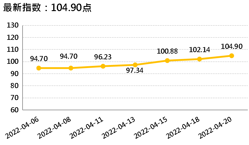 指数显示,4月14日至4月20日期间,国内香蕉产地价格指数、香蕉销地批发价格指数、进口蕉价格指数环比上涨,皇帝蕉产地价格指数环比持平。