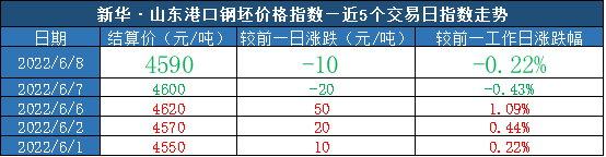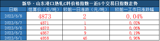 新华财经·指数|山东港口大商中心钢坯、热轧C料价格指数日报(6月8日)