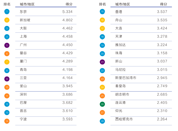 《东亚海洋城市文旅发展指数报告(2022)》以中日韩三国和东盟9个国家的28个沿海(或岛屿)旅游目的地为评价范围,基于文旅活力、文旅资源、文旅生活、设施政策四个维度进行综合分析和量化对比,排名结果从15个具体指标测评得出。该指数充分吸取了国际权威机构对全球旅游业发展的评价指标,多维度系统评价东亚及东盟地区海洋城市文旅发展情况,构建起具有海洋特色的城市文旅评价体系,具有全面性、时效性、准确性特点。