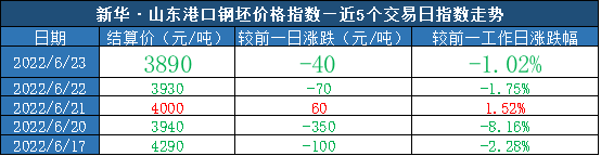 新华财经·指数|山东港口大商中心钢坯、热轧C料价格指数日报(6月23日)
