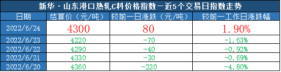 新华财经·指数|山东港口大商中心钢坯、热轧C料价格指数日报(6月24日)