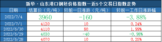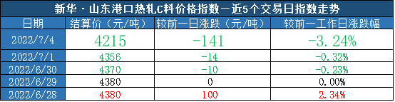 新华财经·指数|山东港口大商中心钢坯、热轧C料价格指数日报(7月4日)
