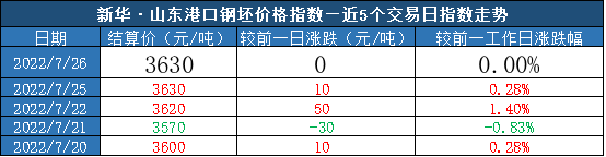 新华财经·指数|山东港口大商中心钢坯、热轧C料价格指数日报(7月26日)