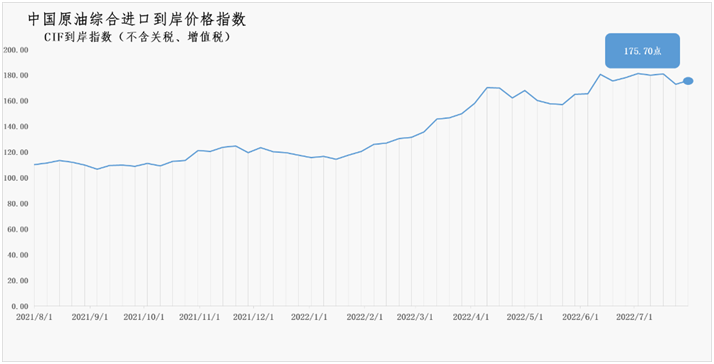 7月25日-31日中国原油综合进口到岸价格指数为175.70 环比上涨1.69%
