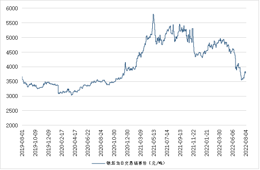 截至2022年8月4日,新华·山东港口热轧C料价格指数报3988元/吨,较前一交易日下跌74元/吨,跌幅1.82%。