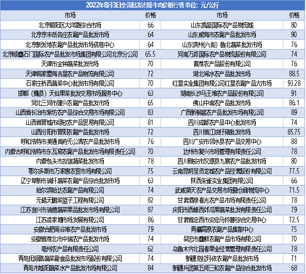 具体价格方面,截至2022年8月1日,阳信活牛收购均价报36.31元/公斤,环比上涨0.03元/公斤;阳信肉牛胴体均价报66.19元/公斤,环比持平。