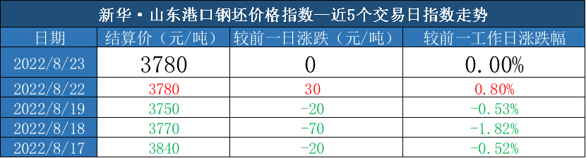 新华财经·指数|山东港口大商中心钢坯、热轧C料价格指数日报(8月23日)